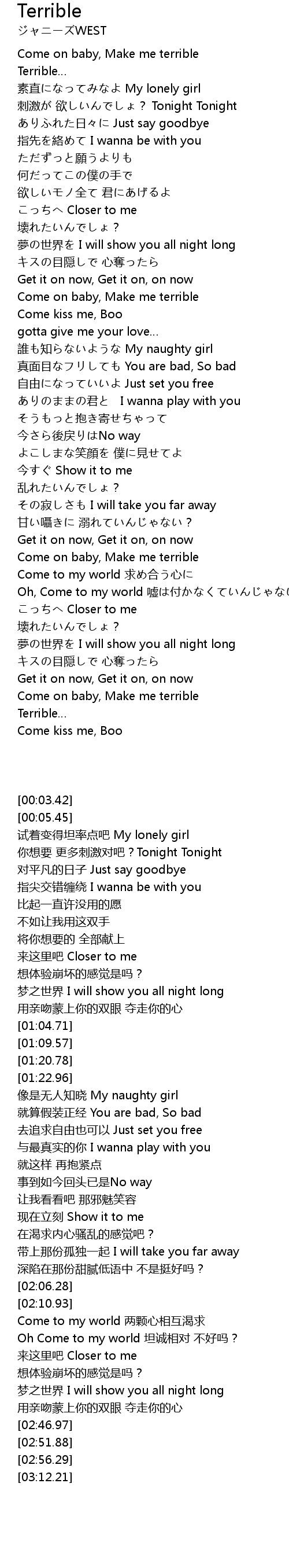 | [01:29.28] | 真面目なフリしても You are bad, So bad |