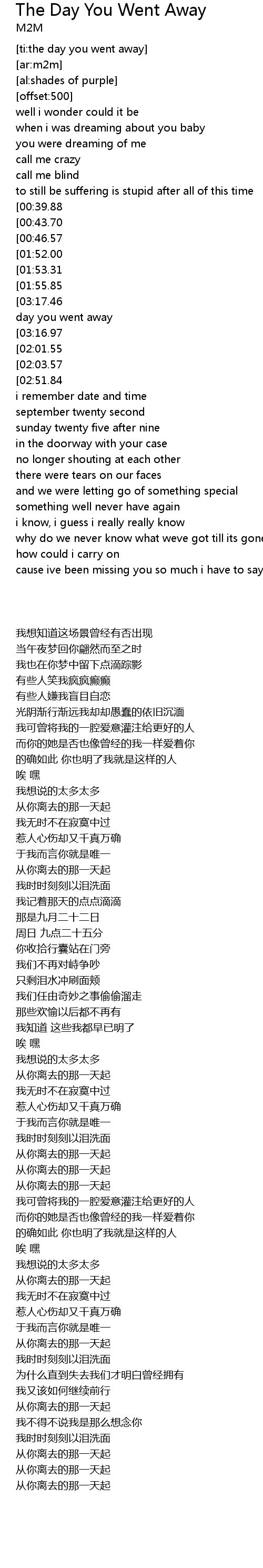 [ti:the day you went away]