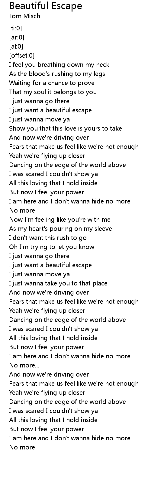 I just want a beautiful escape |