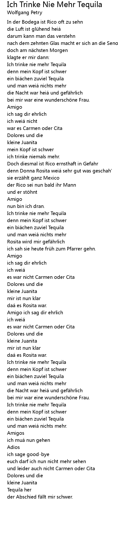 | Song | Ich Trinke Nie Mehr Tequila |