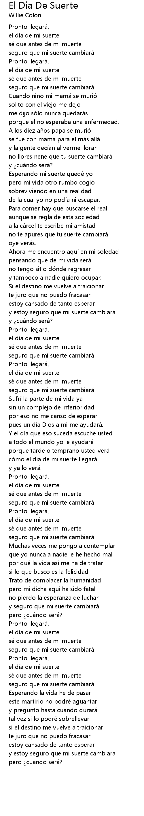 | có mo el dí a de mi suerte llegará | |