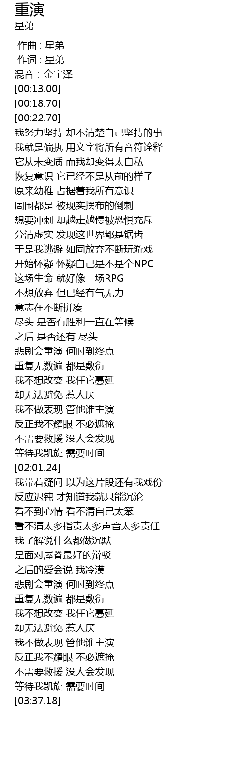 | [00:01.00] | 作词 : 星弟 |