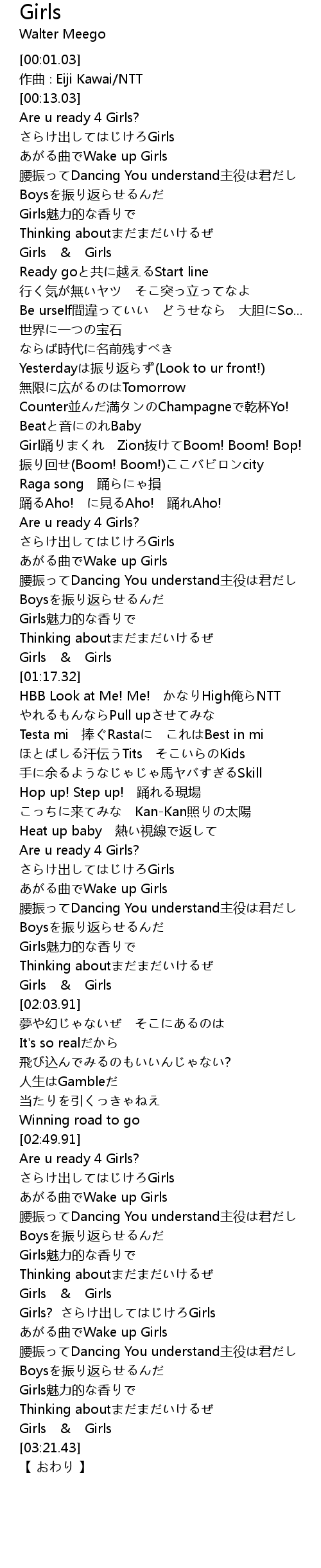 | [03:05.80] | Girls? さらけ出してはじけろGirls |