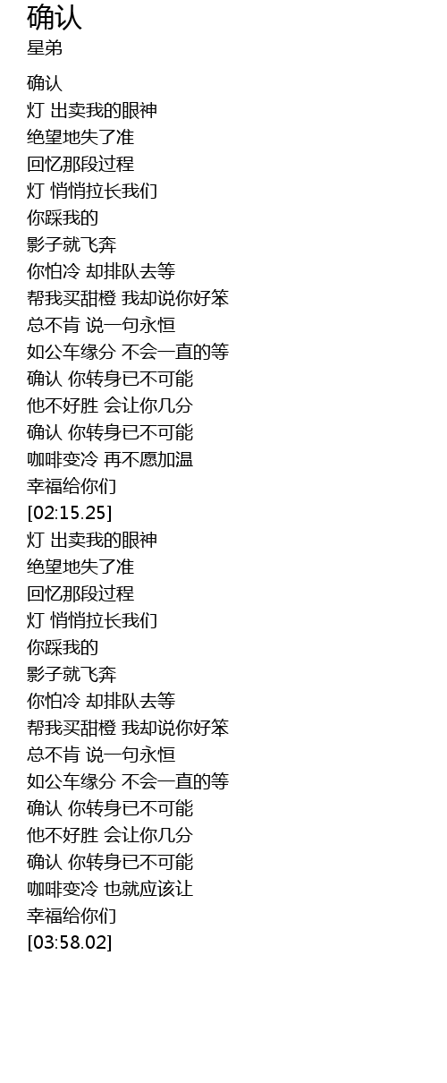 | [03:25.05] | 确认 你转身已不可能 |