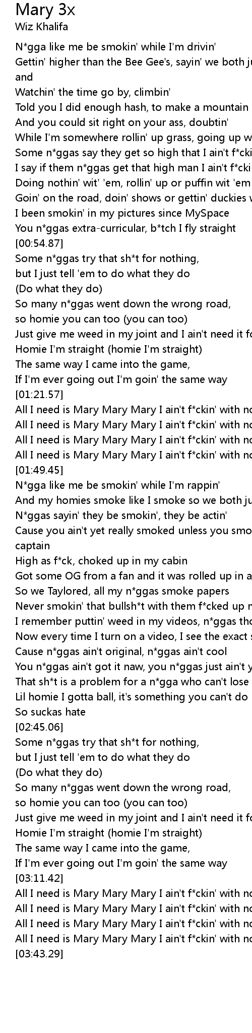[03:11.86] All I need is Mary Mary Mary I ain't f*ckin' with no other drug