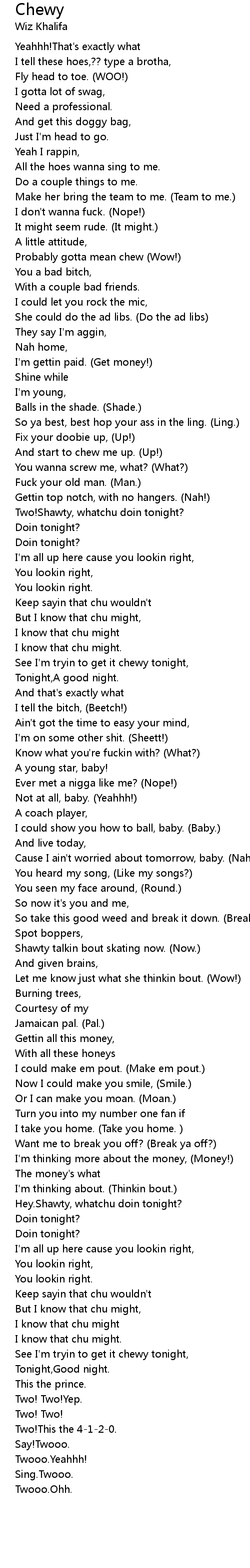 Probably gotta mean chew (Wow!) |
