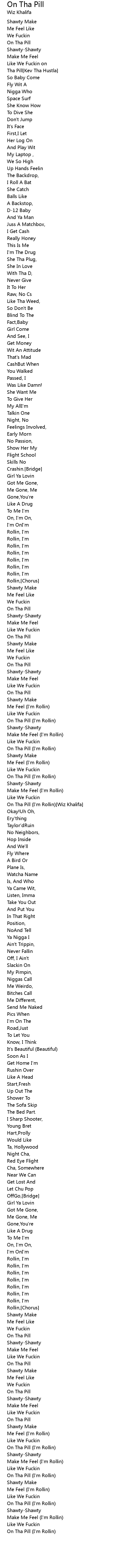 On Tha Pill (I'm Rollin)[Wiz Khalifa] |