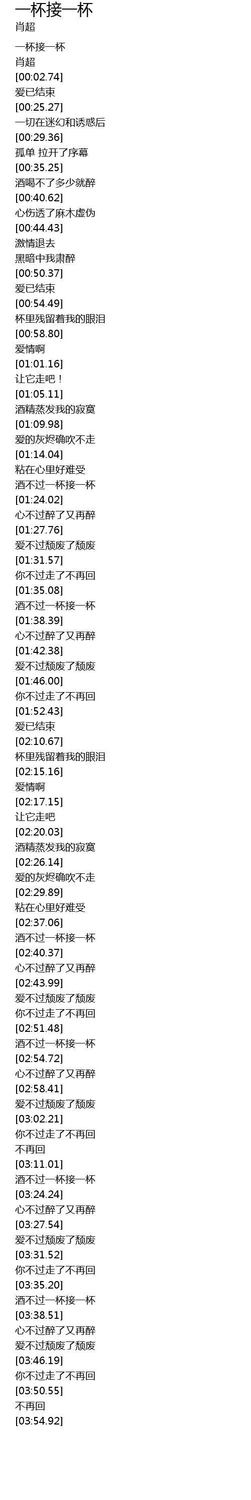 | [02:52.29] | jiǔ bù guò yī bēi jiē yī bēi |