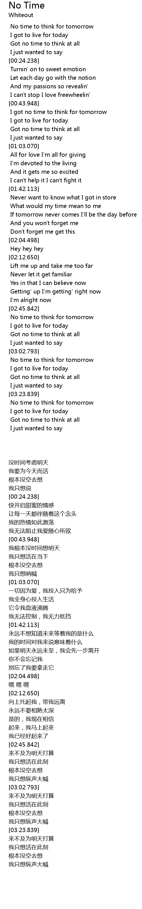 | [03:24.406] | No time to think for tomorrow |