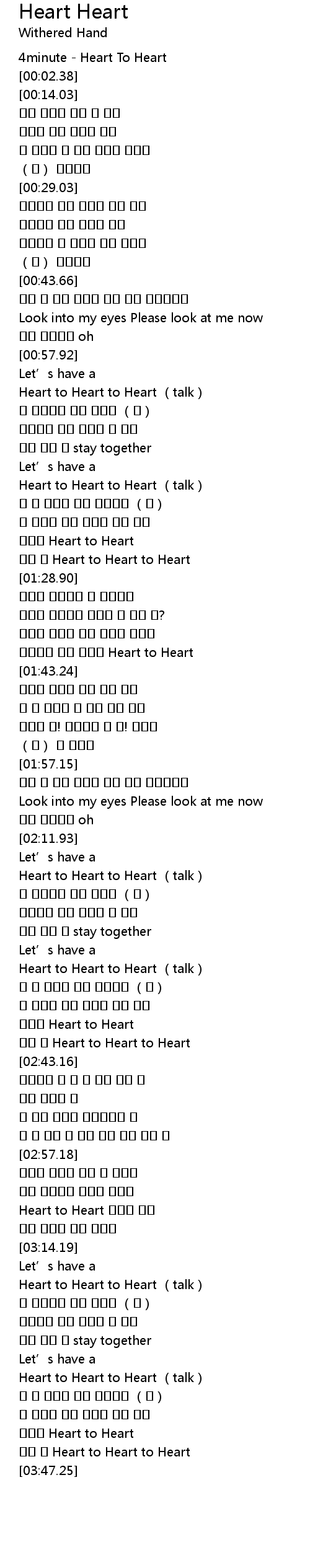 | [02:38.47] | 이제는 Heart to Heart |