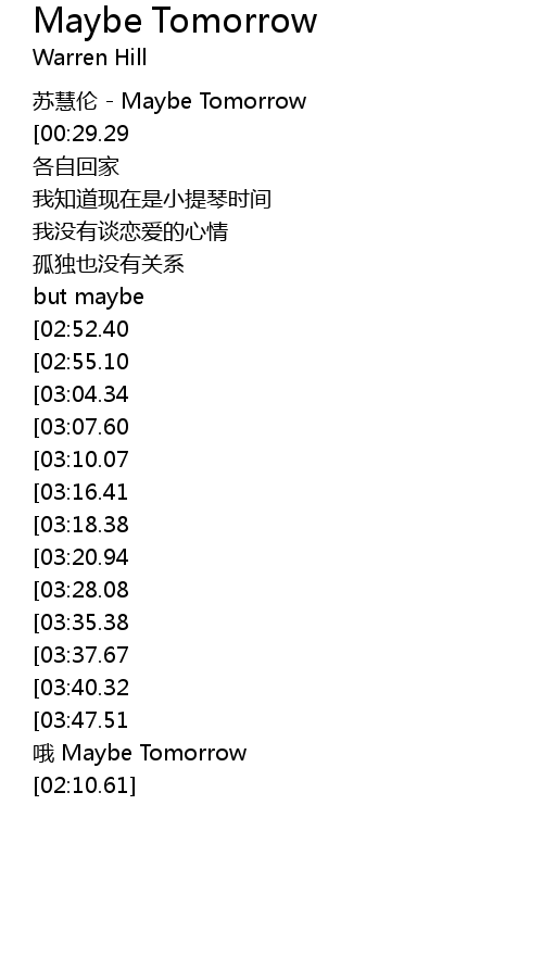| [00:00.00] | 苏慧伦 - Maybe Tomorrow |