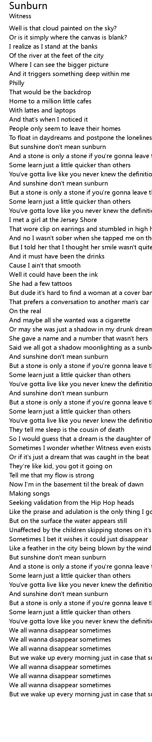 And sunshine don't mean sunburn |