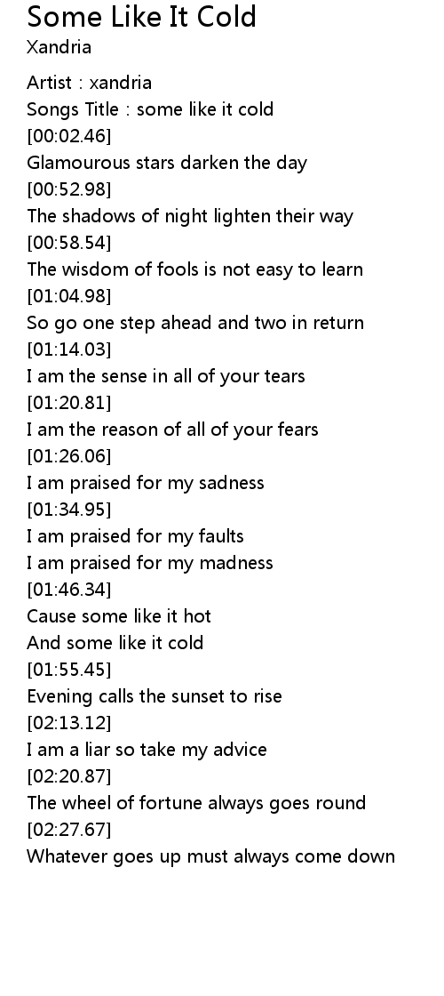 | [00:00.90] | Songs Title: some like it cold |