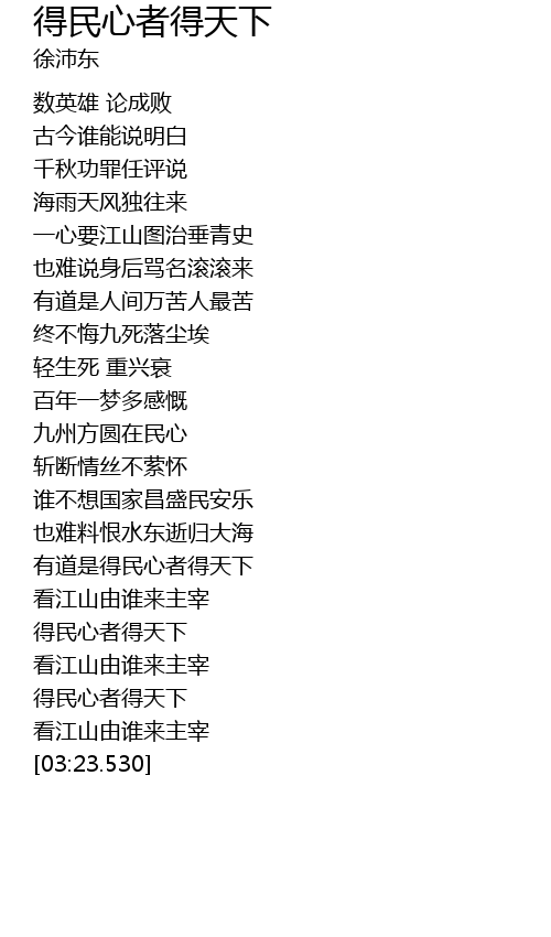 | [03:03.060] | dé mín xīn zhě dé tiān xià |