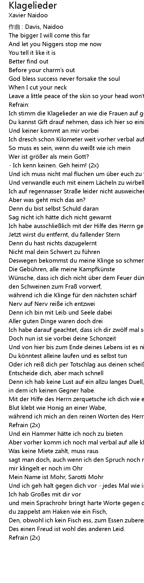 | Ich stimm die Klagelieder an wie die Frauen auf gefallene M nner | |