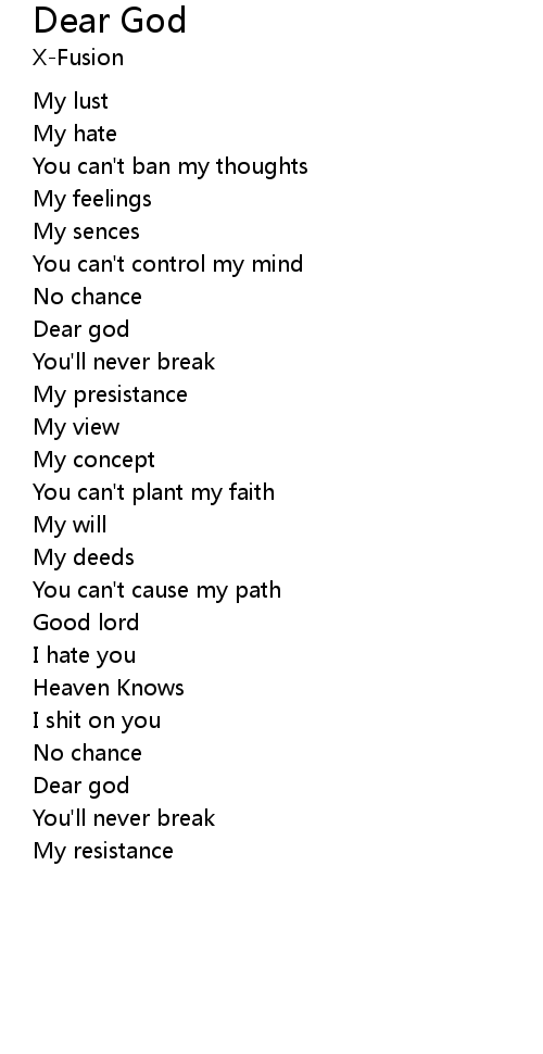 | Song | Dear God |