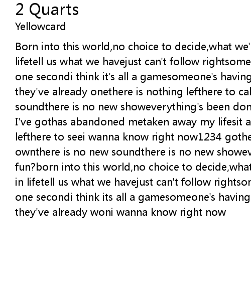 | Born into this world,no choice to decide,what we're doing nowis what we do in lifetell us what we havejust can't follow rightsomehow i don't believenot for one secondi think it's all a gamesomeone's having funplaying with our mindsas if they've already onethere is nothing lefthere to call my ownthere is no new soundthere is no new showeverything's been donewhat's been fun?the only thing | |