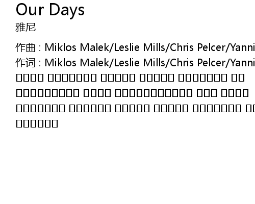 | 作词 : Miklos Malek/Leslie Mills/Chris Pelcer/Yanni | |