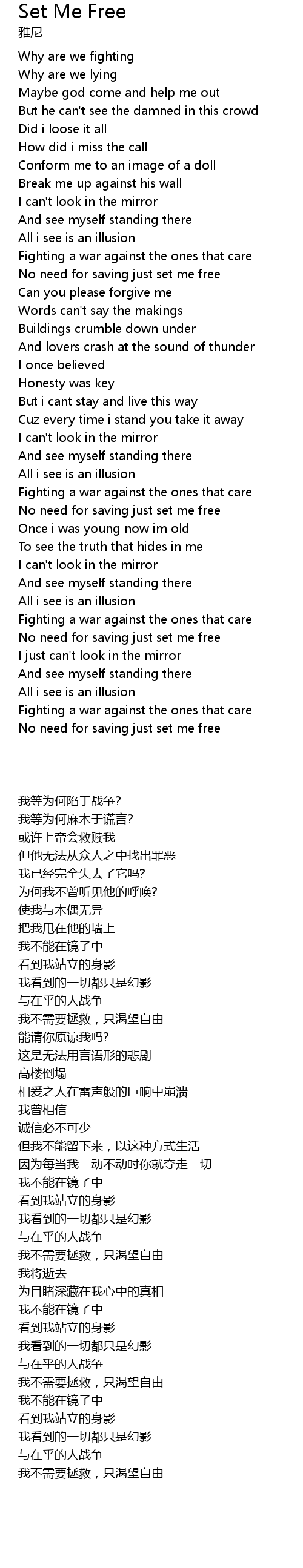 | [02:54.22] | No need for saving just set me free |