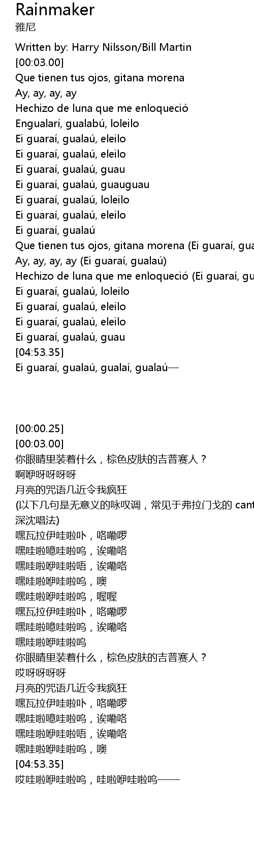 | [04:26.63] | Hechizo de luna que me enloqueció Ei guaraí, gualaú |