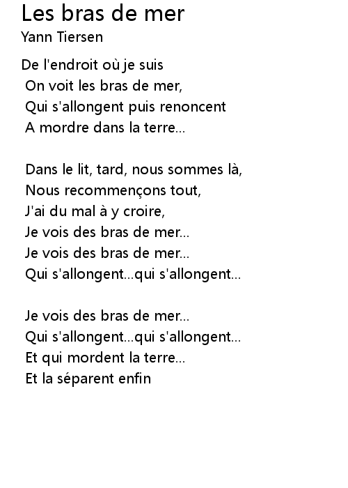 | Song | Les bras de mer |