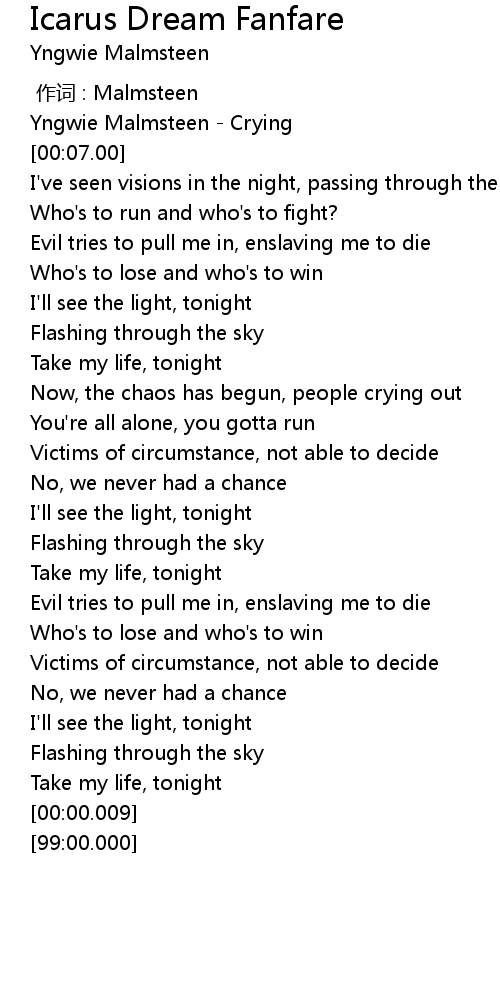 | [00:02.00] | Yngwie Malmsteen - Crying |