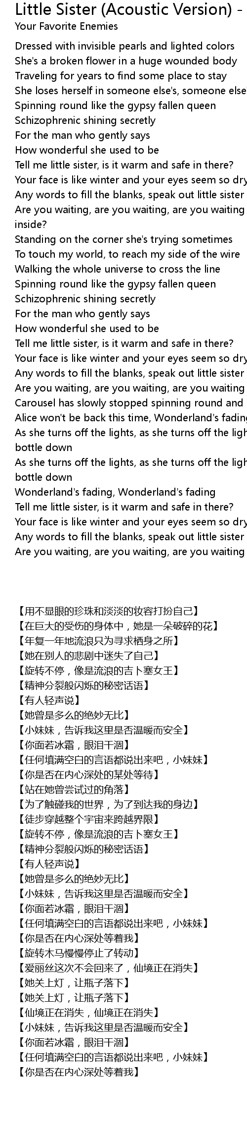 Any words to fill the blanks, speak out little sister |