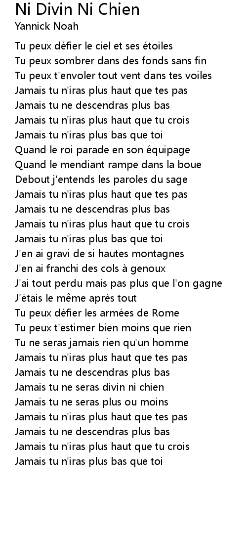 | J' ai tout perdu mais pas plus que l' on gagne | |