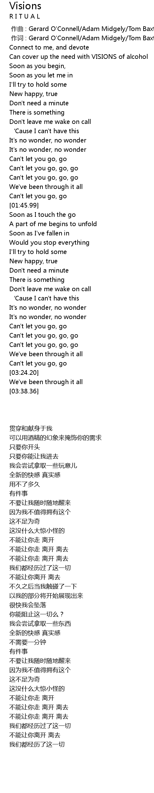 | [00:01.00] | zuò cí : Gerard O' Connell Adam Midgely Tom Baxter |