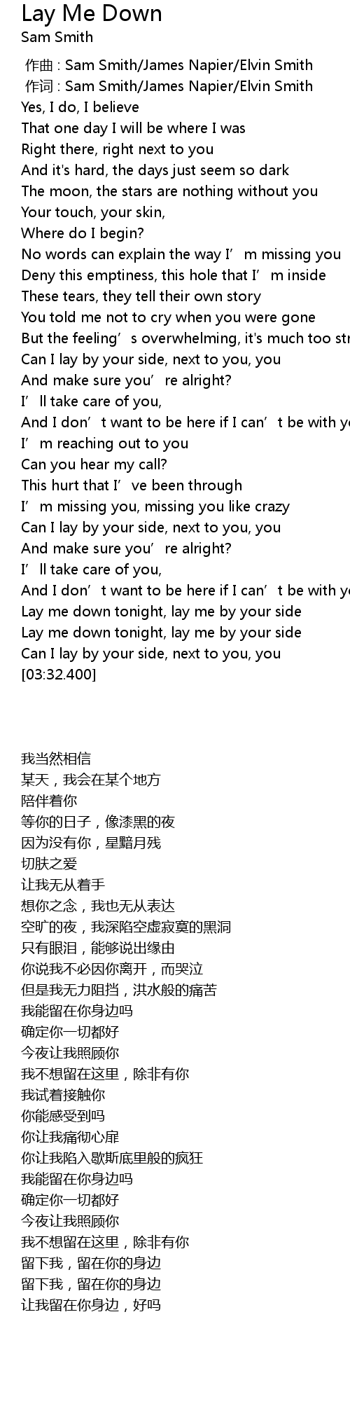 | [00:00.206] | 作词 : Sam Smith/James Napier/Elvin Smith |