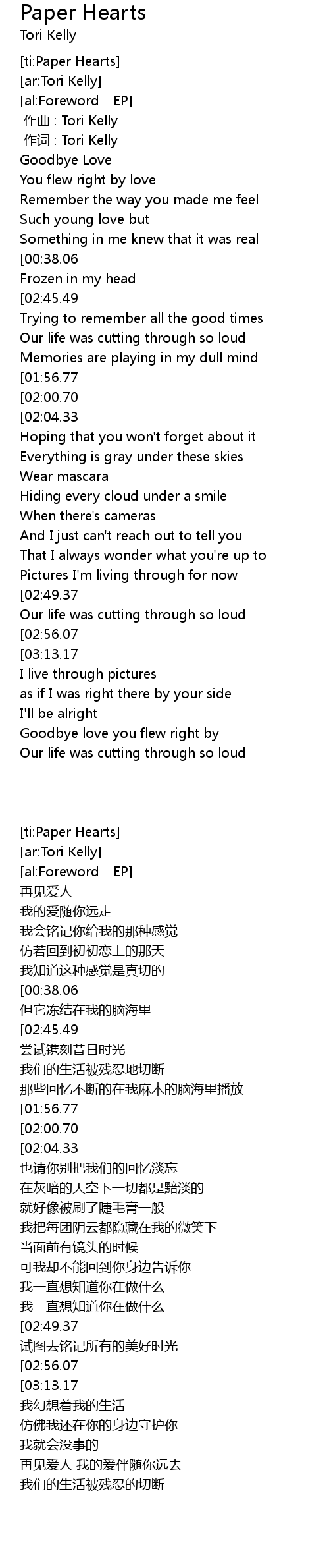 | [ti:Paper Hearts] | |