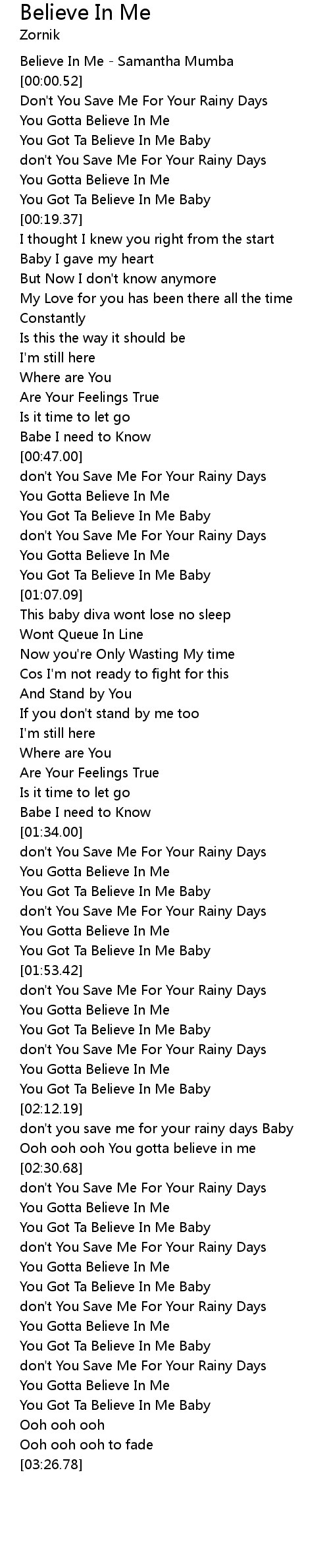 [03:05.73] You Got Ta Believe In Me Baby
