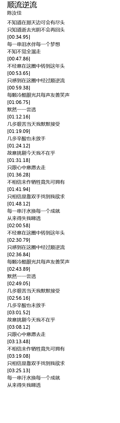 | [02:31.99] | 只感到在这圈中经过顺逆流 |