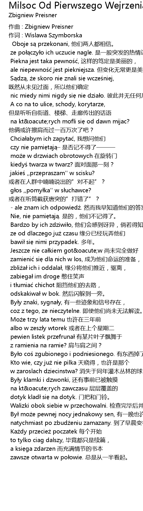 | Bardzo by ich zdziwiło, 他们会感到讶异,倘若得知 | |