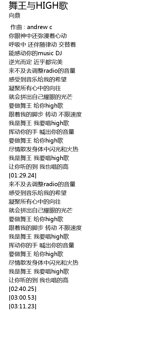 | [02:31.27] | 我是舞王 我要唱high歌 |