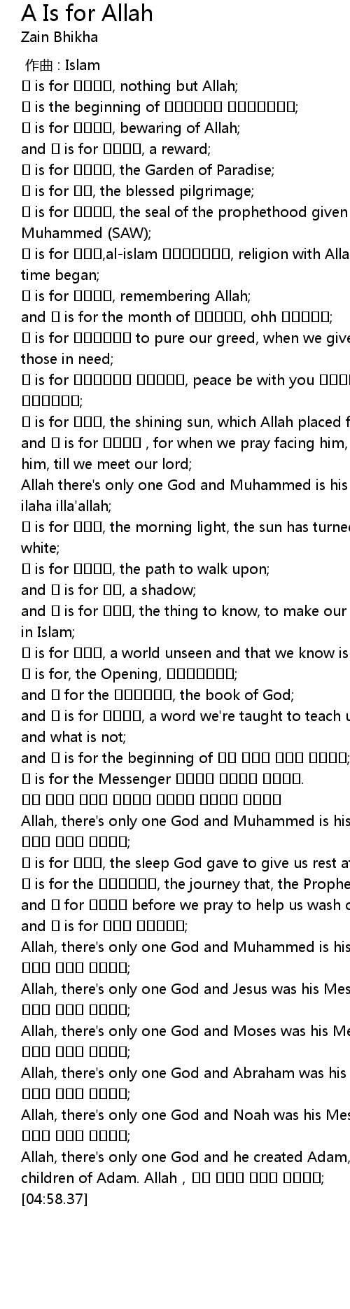 | [00:00.03] | ا is for الله, nothing but Allah; |