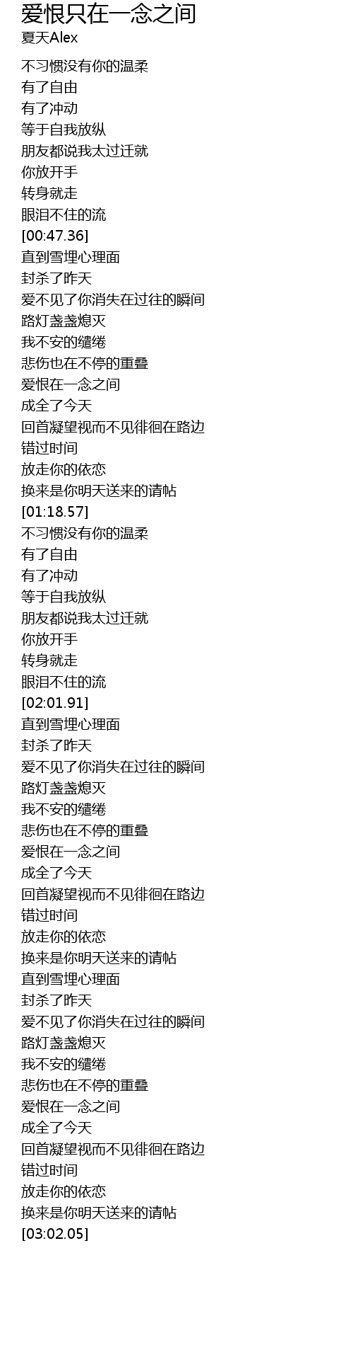 | [02:46.22] | ài hèn zài yī niàn zhī jiān |
