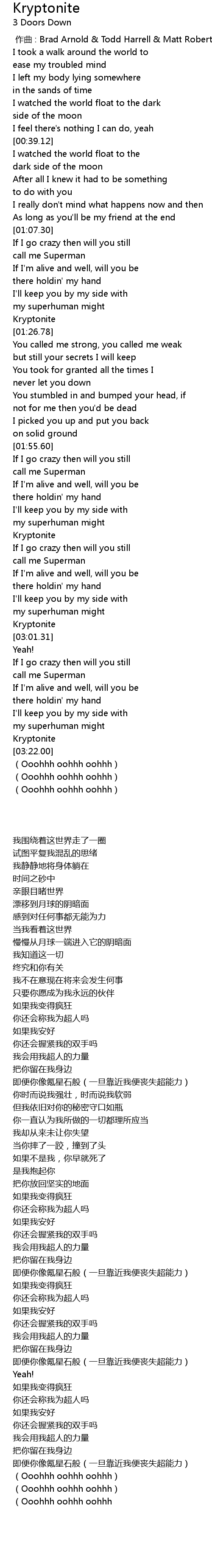 | [03:20.09] | Kryptonite |