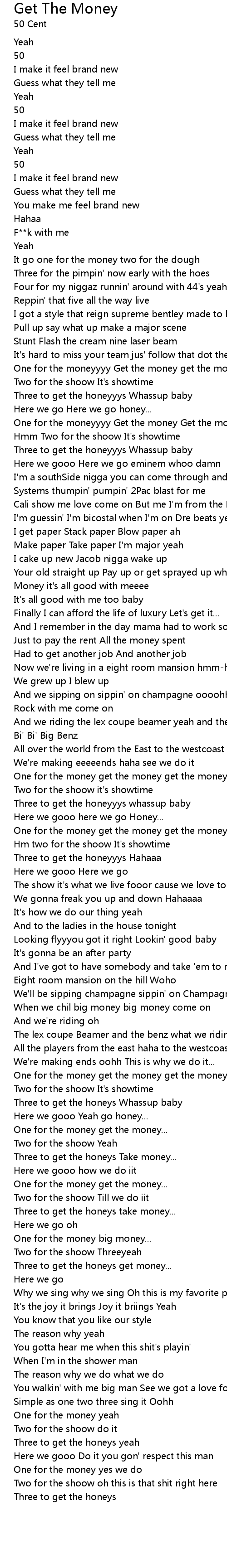 One for the money get the money get the money yeah |
