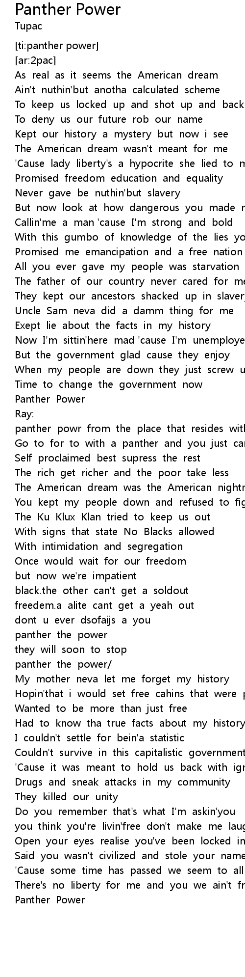 Panther Power Lyrics