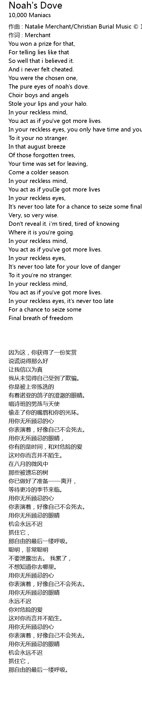 | 作曲 : Natalie Merchant/Christian Burial Music © 1992 | |