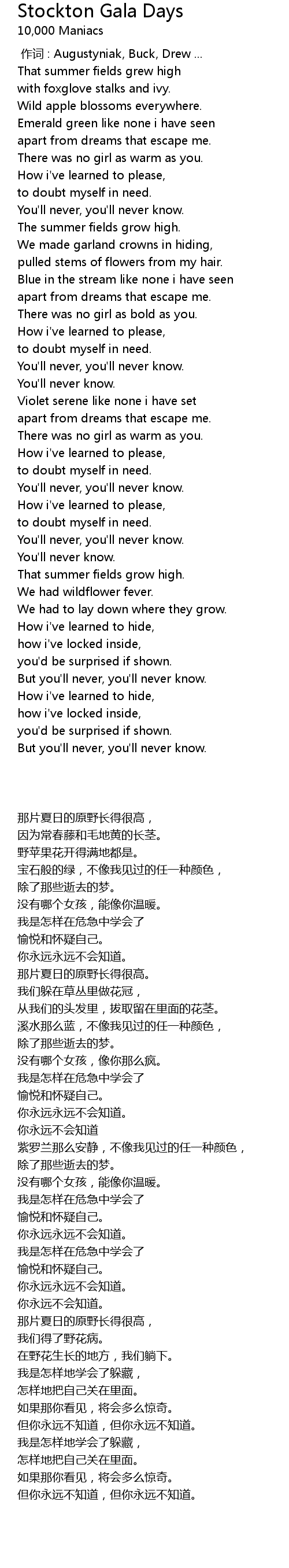 | [00:00.00] | 作词 : Augustyniak, Buck, Drew ... |