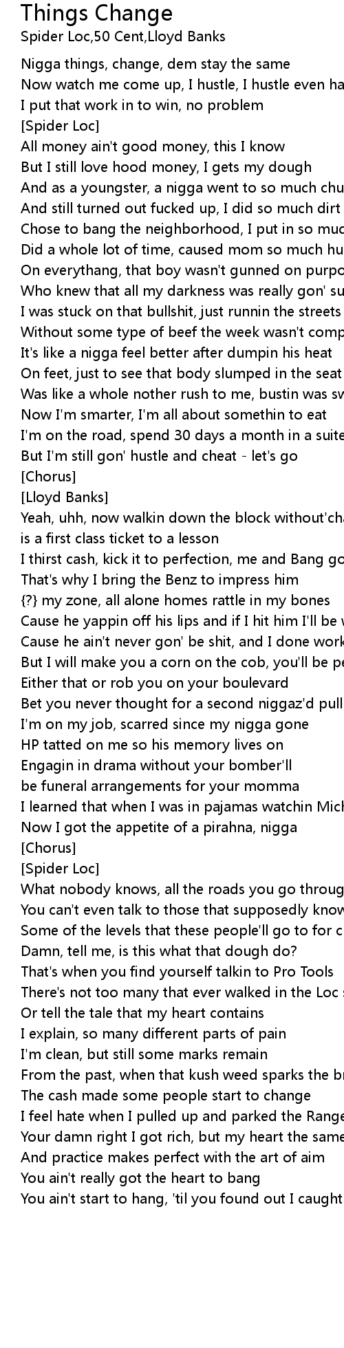Nigga things, change, dem stay the same |