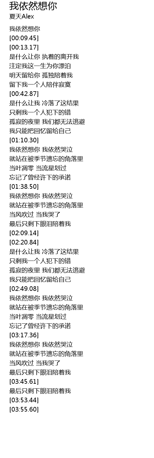 | [03:17.79] | 我依然想你 我依然哭泣 |