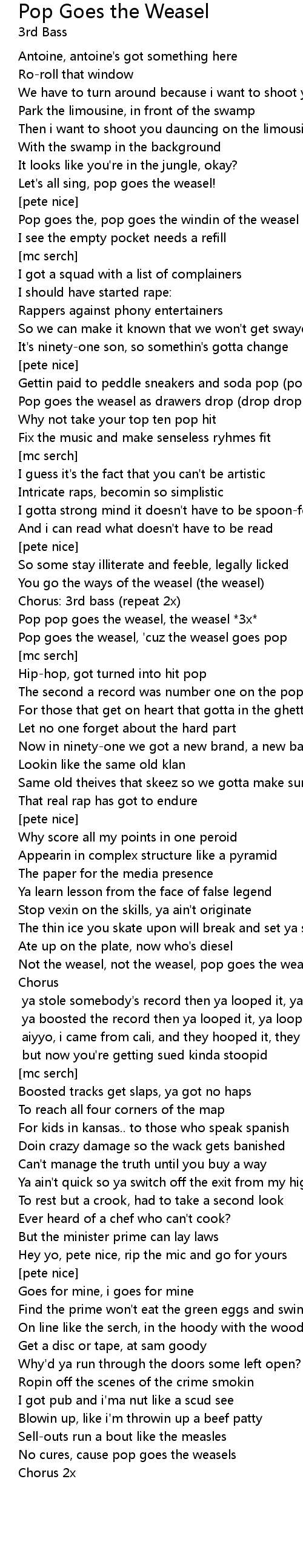 Pop goes the weasel, 'cuz the weasel goes pop |