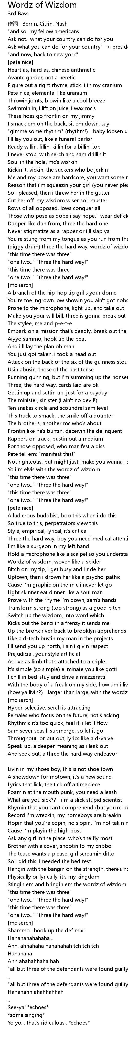 | (diggy drum) three the hard way, wordz of wizdom | |