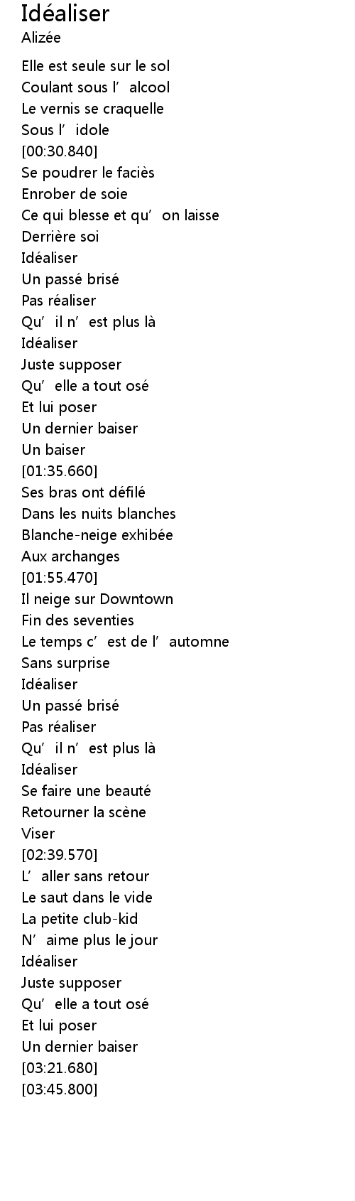 | [02:09.728] | Idéaliser |