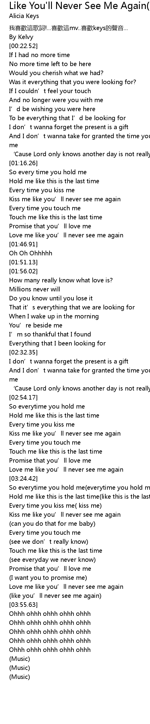 | [03:36.45] | Kiss me like you’ll never see me again |