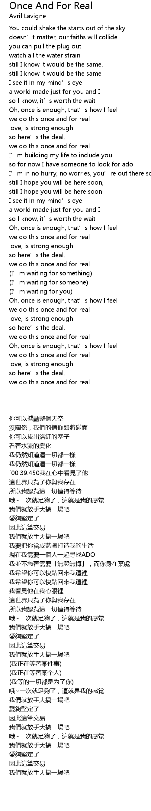 | [01:50.090] | Oh, once is enough, that' s how I feel |