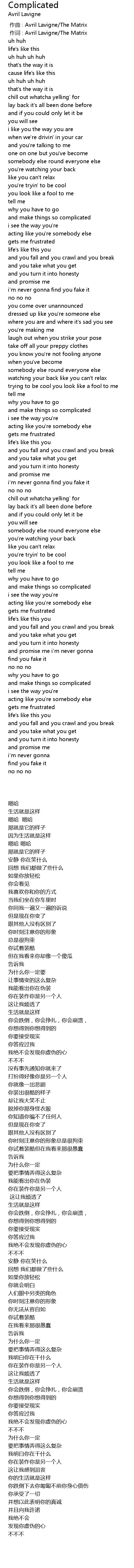 | [00:01.00] | 作词 : Avril Lavigne/The Matrix |